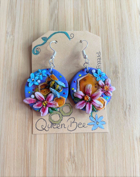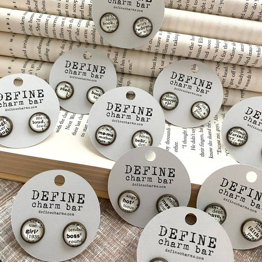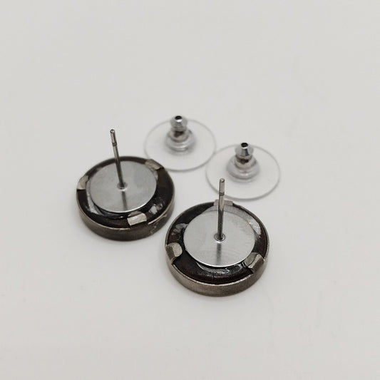 Earrings - Round Typewriter Key Post (Cutie) QT Bg on Bk