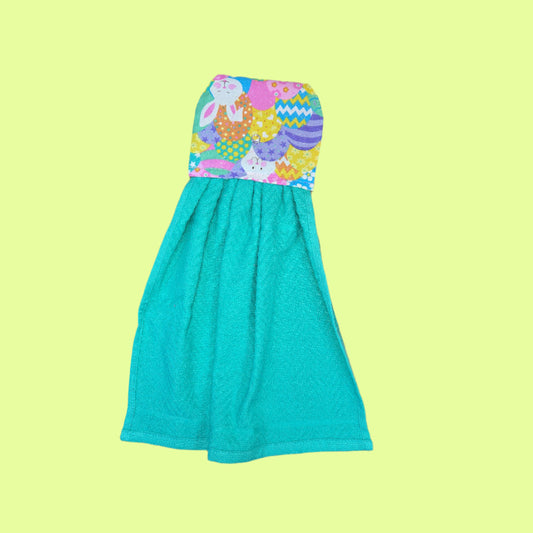 Hand Towel - Handmade by Rosemary - aq/teal/wt/bl