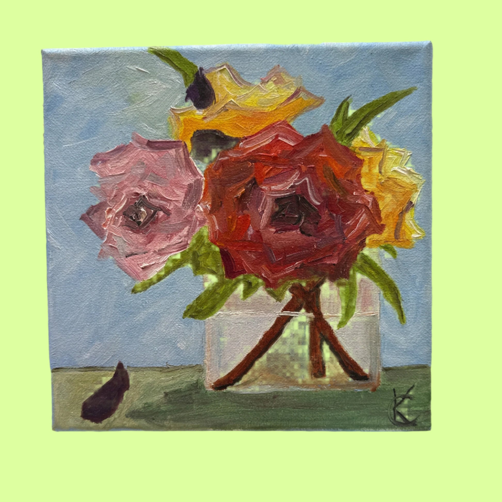 This beautiful 8x8 oil on canvas was painted by our local artisan Kate, who's been making art since she was just 8 years old. Featuring a floral arrangement in a vase, this piece blends modern simplicity with classic elegance—perfect for adding a touch of beauty to any space or gifting to someone special.