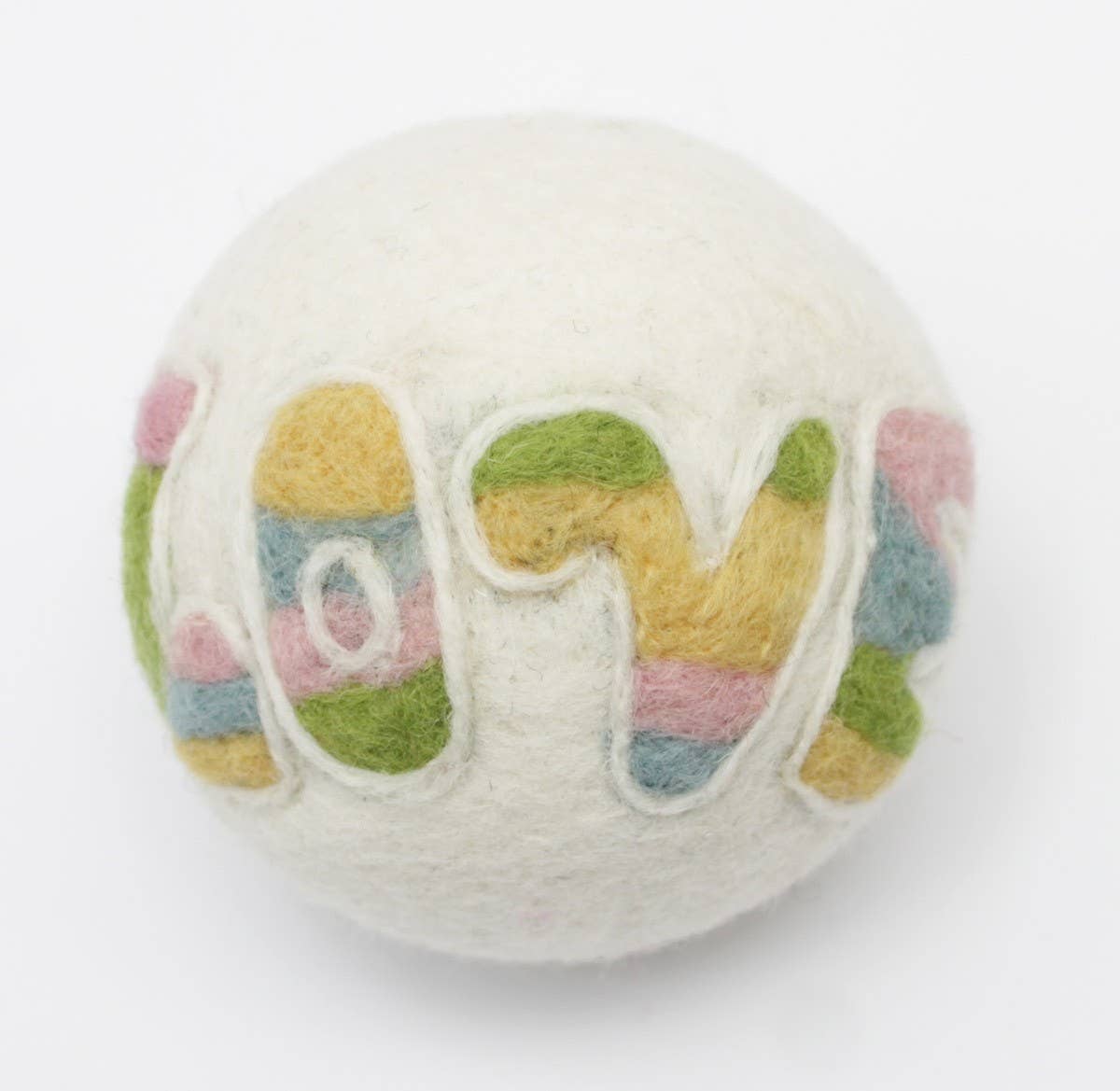 Ethically handmade 100% New Zealand Wool Dryer Ball, hand felted in Nepal. WFTO (World Fair Trade Organization) certified.