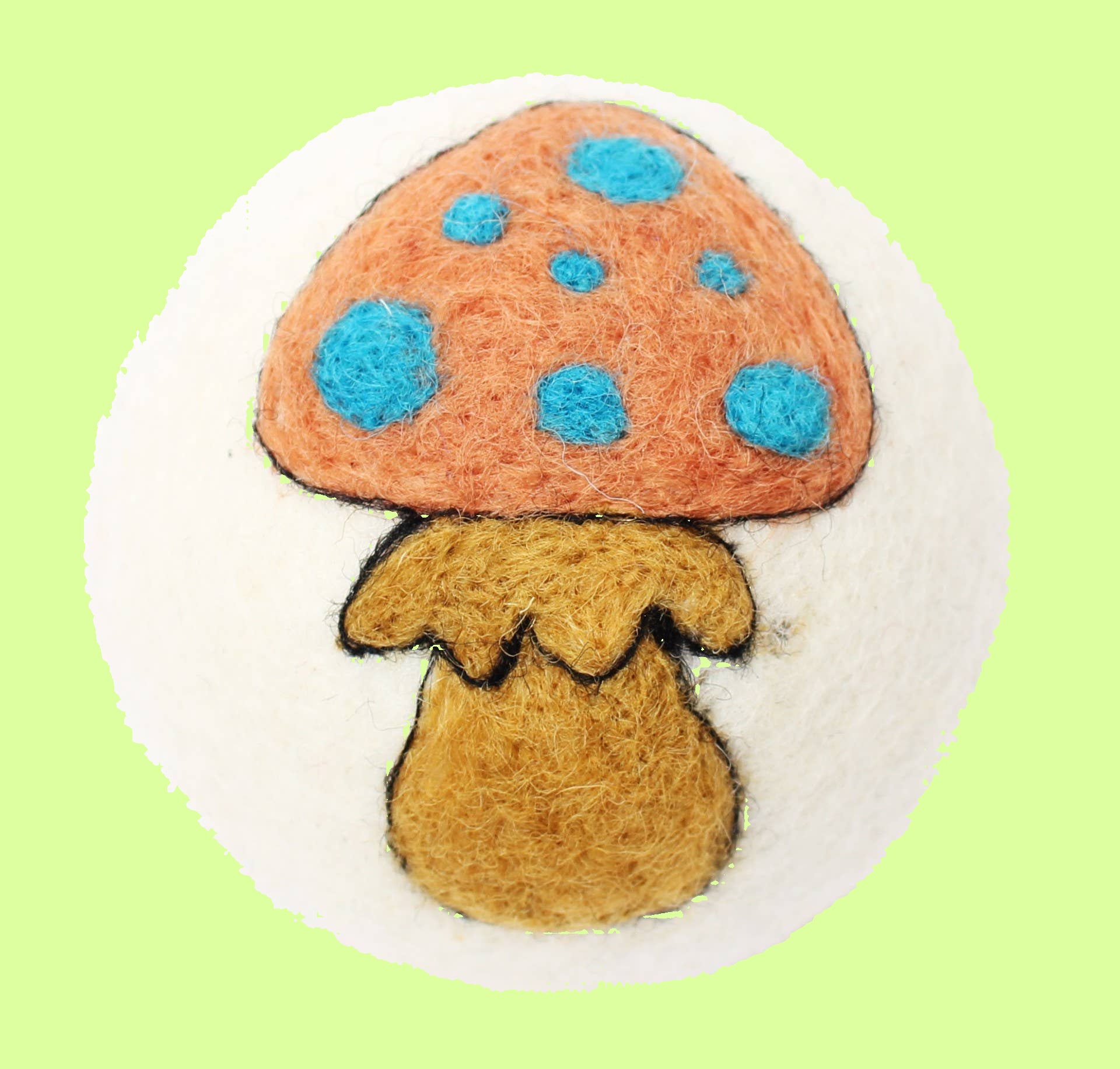 Dryer Ball - Mushrooms: Eco Wool Fair Trade: Orange/Blue Mushroom