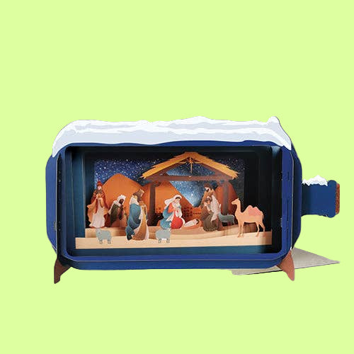 These dimensional cards, hand-made with a patent pending process. Six-layered, laser and die cut paper technique. Flat pack, pop up image and information sheet on the front packaging.